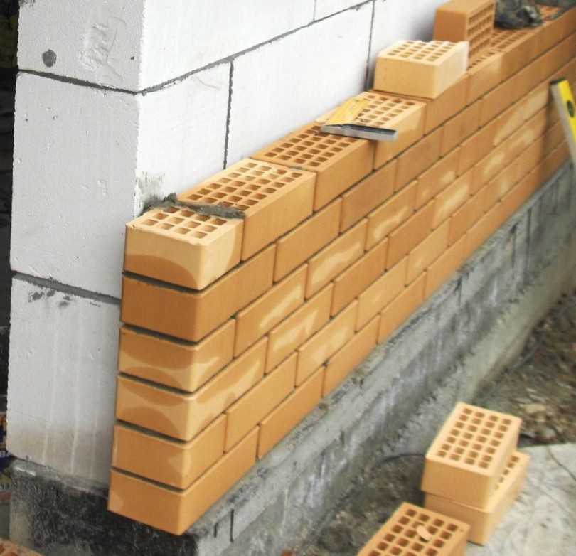Кладка облицовочного кирпича своими руками происходит следующим образом: