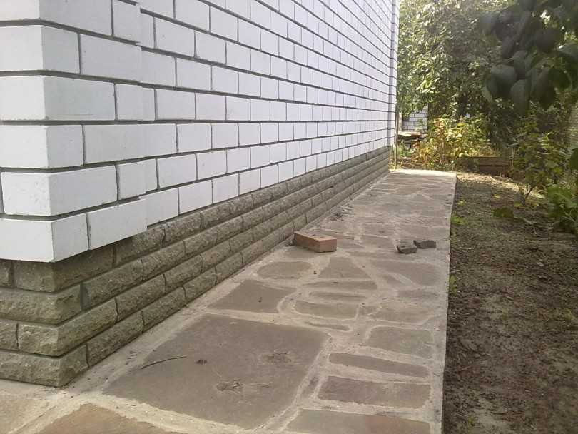 Необходимость облицовки внешних стен здания должна обсуждаться в процессе закладки фундамента. Первый ряд облицовочного кирпича укладывается на цоколь. Выступ цоколя формируют на этапе заливки фундамента. Ширина выступа соответствует толщине выбранного метода кладки кирпича и воздушному зазору для вентиляции.