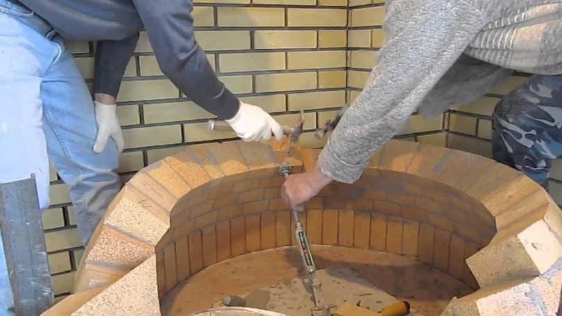 Обязательным условием является обеспечение ровности швов и предварительная сухая выкладка огнеупорного кирпича. Это позволит соблюсти ровность рядов и подогнать элементы по форме. Технология такова: каждый укладываемый верхний ряд перекрывает промежутки предыдущего. Правильная расшивка обязательна: малозаглубленный шов станет собирать воду, сажу. В зависимости от температурного режима допускается ширина шва в 1, 2, 3, 4 мм. Чем выше нагрев, тем тоньше должен быть шов. Обязательно проверять равномерность толщины раствора и ровность укладываемых рядов.