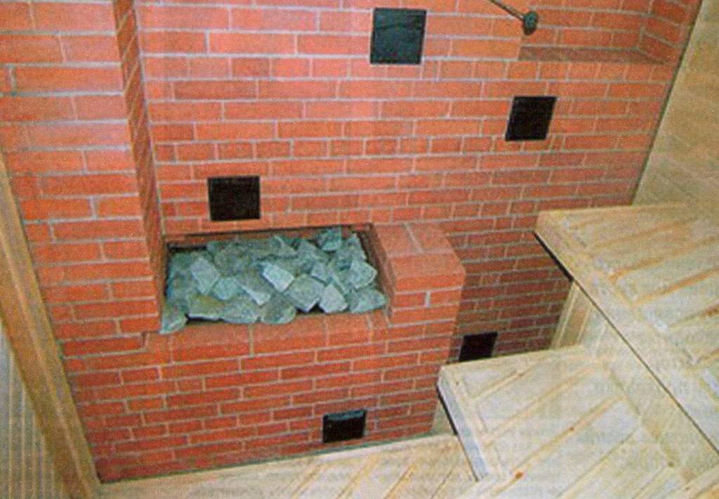 «Плитная» представляет собой такую конструкцию: сверху кирпичей кладут чугунные плиты, на них размещают камни и металлические бачки с водой, которую используют во время банных процедур. Камни и баки надолго удерживают тепло. Строительство плитного здания усложняют именно чугунные плитки. Их не просто раздобыть, к тому же они значительно утяжеляют конструкцию. Нужна ли вам лишняя нагрузка на фундамент? Такой тип используется крайне редко.