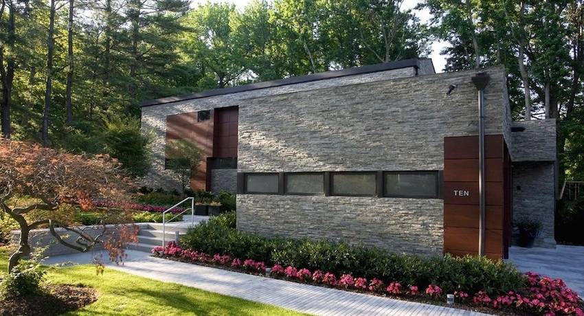 Это лучший клинкерный кирпич для отделки фасада ресторана или косметического салона, потому что он имеет белоснежный цвет с тонкими вертикальными линиями-насечками, придающими изысканность кладке и более дорогой вид.