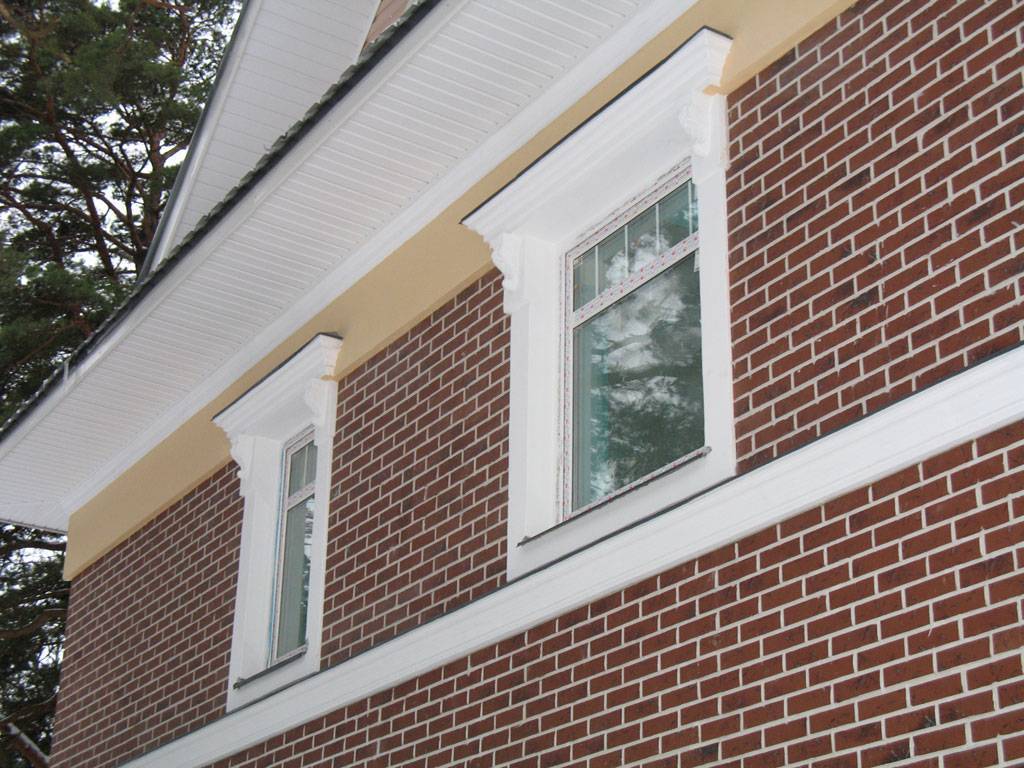 В первую очередь облицовывают периметр оконных и дверных проемов. Затем, начиная с первого нижнего ряда, заполняют плоскости стен. Сразу монтируют угловые элементы отделки