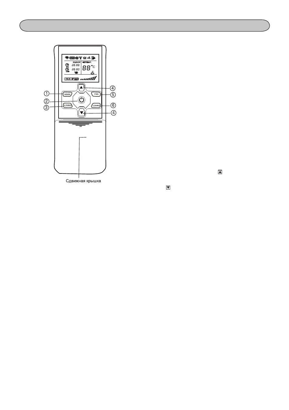 6. Кнопка изменения работы жалюзи (V.SWING).