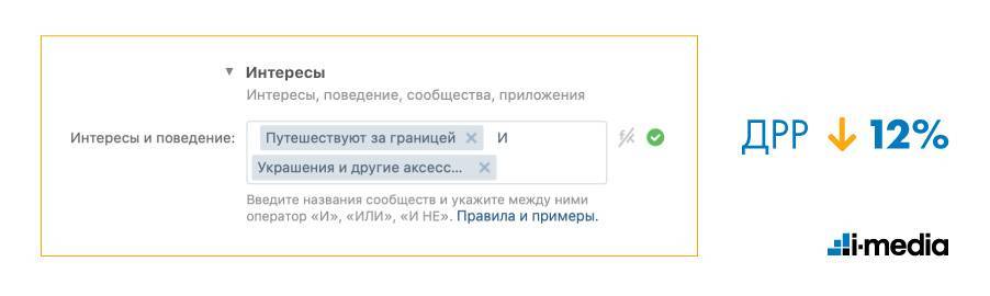 Например, мы использовали пересечение интересов «Путешествуют за границей» и «Украшения и другие аксессуары», чтобы собрать более платежеспособную аудиторию. ДРР при таком пересечении снизился на 12%.