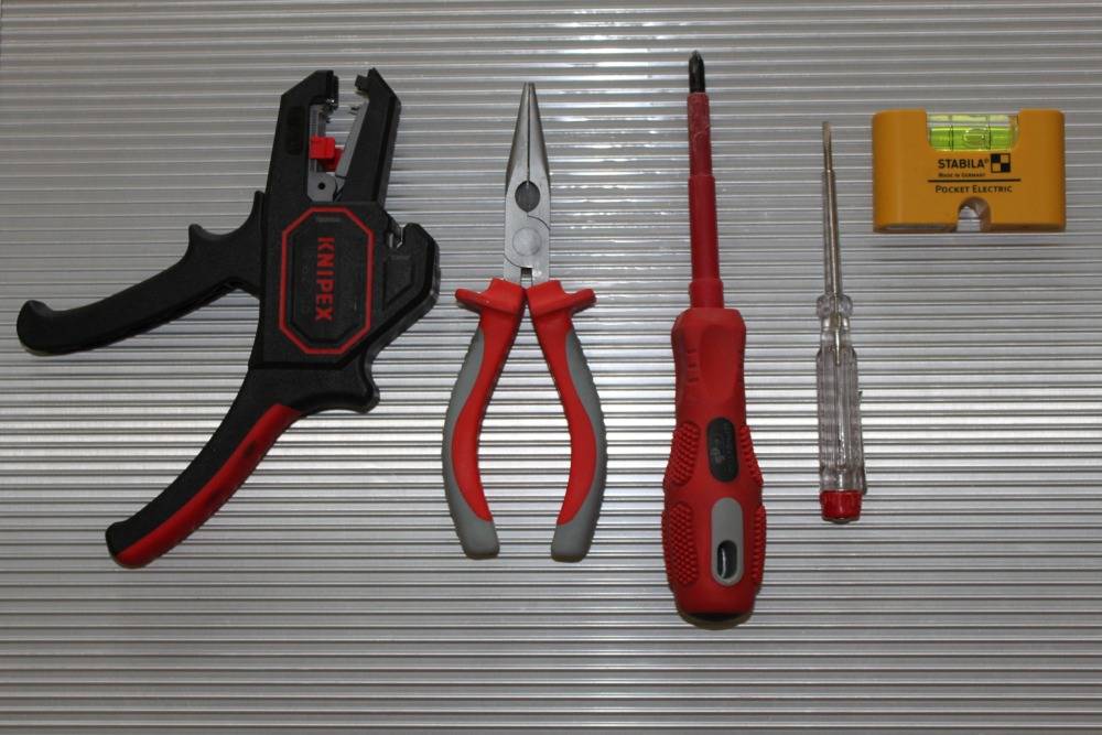Выбирайте инструмент с мягкими ручками, облаченными в изолирующий материал. Также возможно вам понадобится специальный инструмент «клещи», для того чтобы быстро зачистить концы проводов от изоляционного материала, и маленькие круглогубцы.