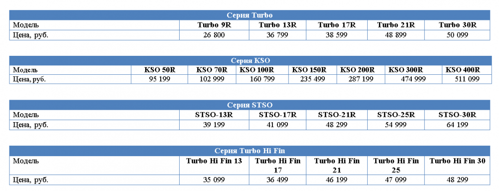 Диапазон мощностей линейки 10,5–34,9 кВт. Базовая версия — Turbo 9R, самая мощная модель — Turbo 30R.