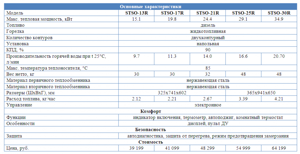 Основные характеристики и стоимость приобретения котлов Kiturami STSO перечислены в таблице.