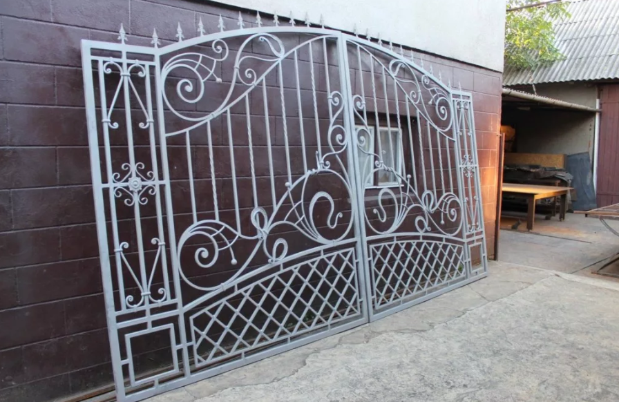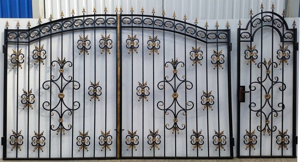 Требуется заранее подобрать подходящие ворота для кованого забора. Они могут быть разных видов, но наиболее популярными являются распашные и откатные створки. Устанавливая забор, стоит запомнить, что он не должен располагаться в непосредственной близости к дороге. Минимальная дистанция в этом случае составляет 1,5 м.