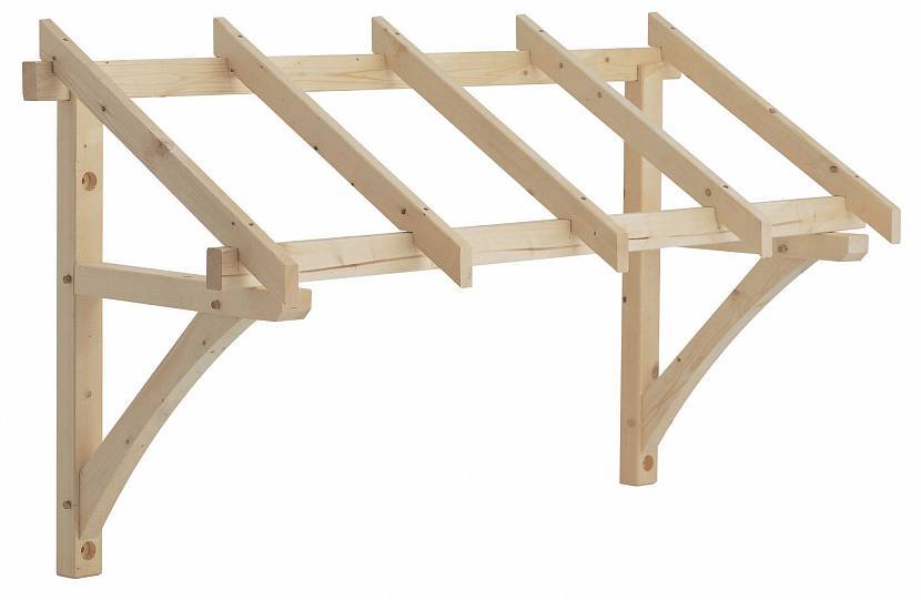 Наиболее простой вид деревянного каркаса для односкатного козырькаИсточник allegroimg.com