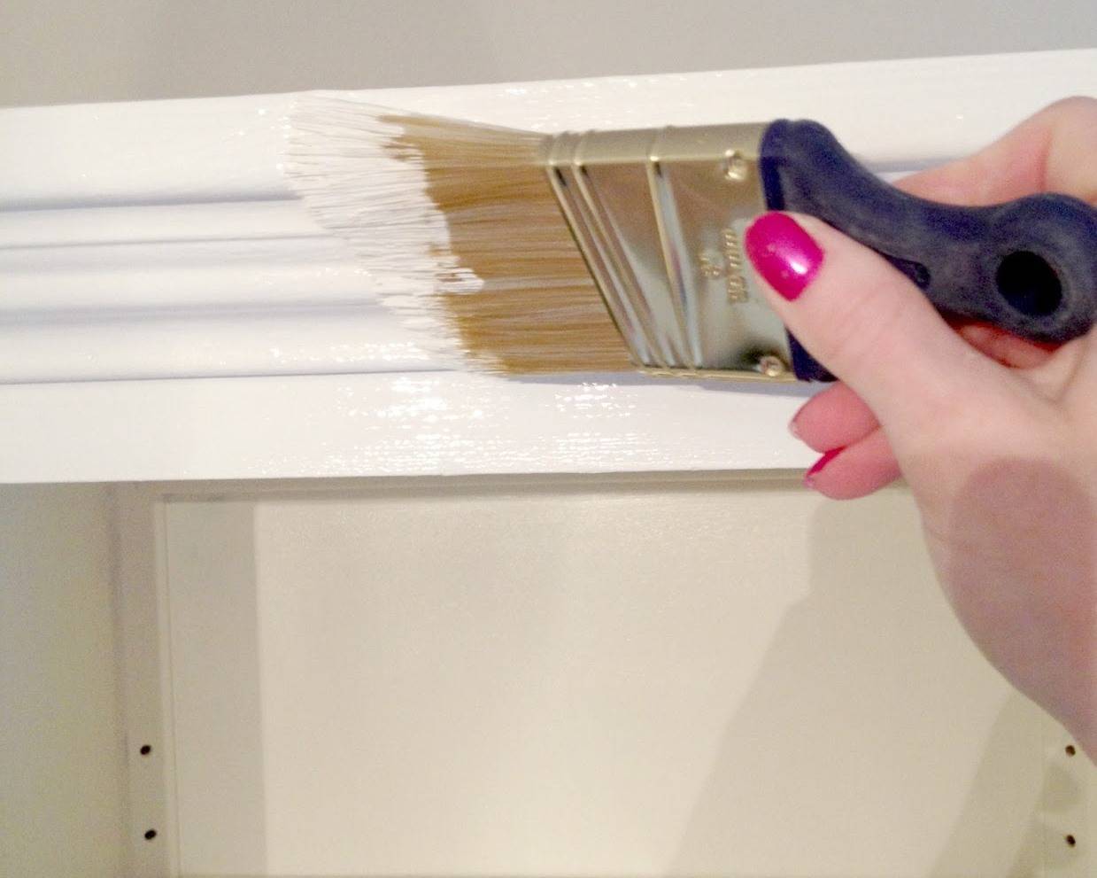 Начните с покраски труднодоступных мест, например, углублений на фасаде. Затем приступайте к окрашиванию всего предмета мебели. Наносить необходимо тонкими слоями. Обычно для полного покрытия требуется нанести краску три раза.