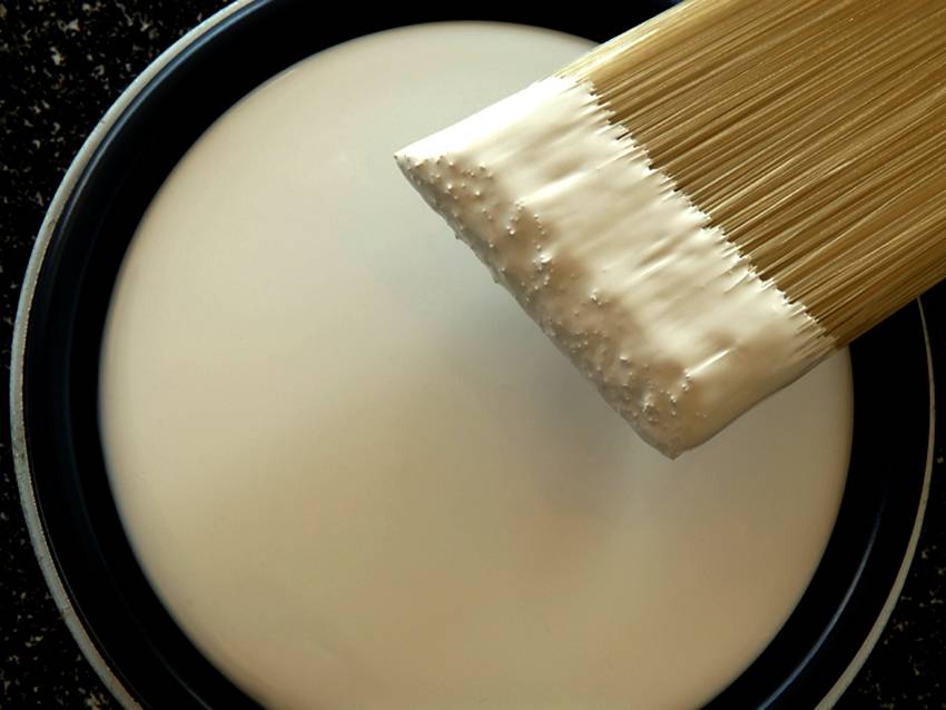 - Практически все составы подходят для внутренних работ. Однако фасадные краски стоят дороже, к тому же в продуктах для наружных работ могут присутствовать вредные органические растворители. Поэтому лучше отдать предпочтение специальным краскам для внутреннего применения.
