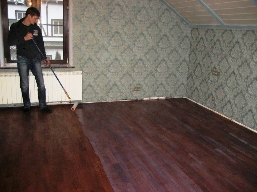 В противном случае излишки влаги будут впитаны нижними слоями половицы, что приведёт к их разбуханию и деформации, поэтому наиболее подходящим вариантом будут красящие составы на полиуретановой или алкидной основе.