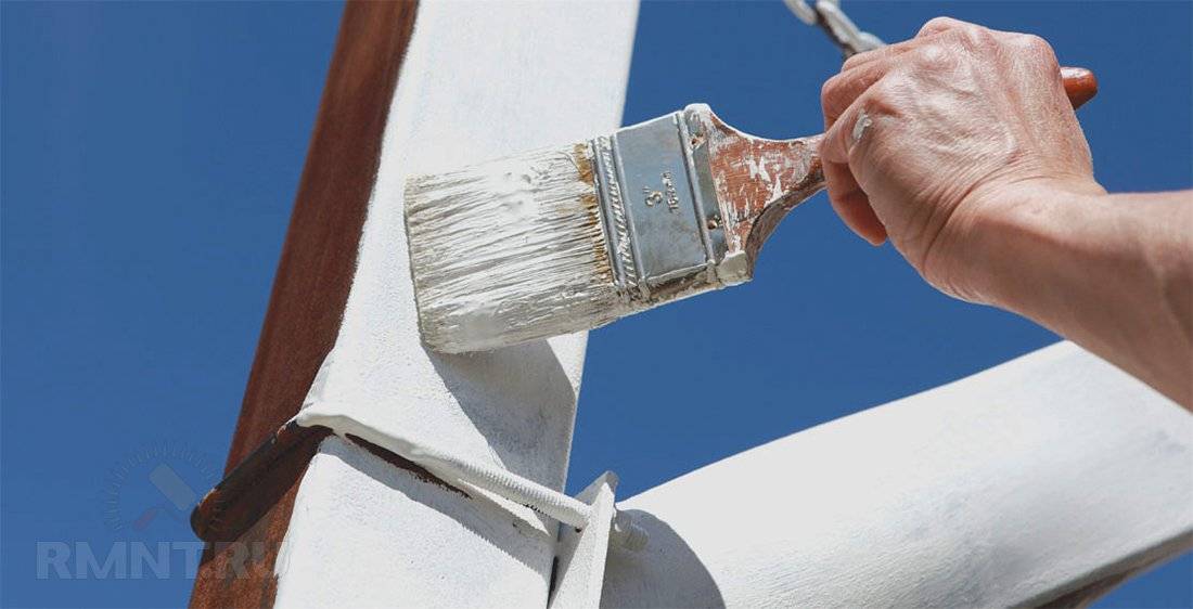 Для обработки металлических опор потребуется щетка из проволоки и небольшого размера кисть.Этапы работы: