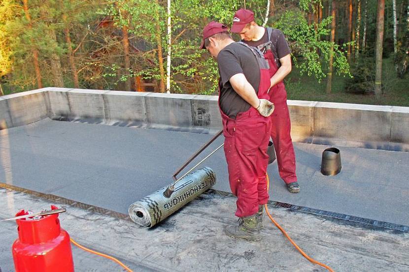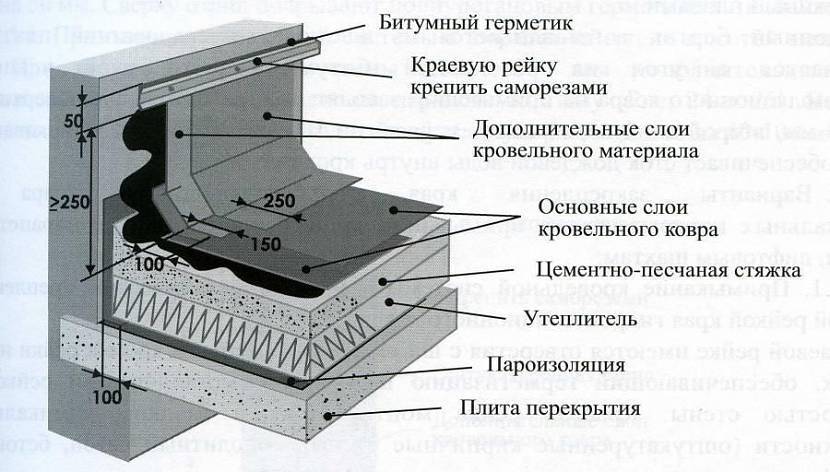 Когда выполняют устройство плоской кровли, полосы рулонного материала укладывают слоями (детальнее: «Устройство рулонной кровли — свойства покрытия «). Если монтаж производят на жидкую мастику, каждый слой клеят с интервалом, который не может быть менее 12 часов.