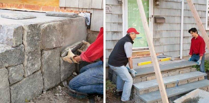 Однако при выборе бетона, какого-либо кирпича (белого, красного) или облицовочного камня, фундамент следует обязательно армировать. Дело в том, что данная конструкция оказывает намного большую нагрузку на само основание, нежели деревянное крыльцо к дому.