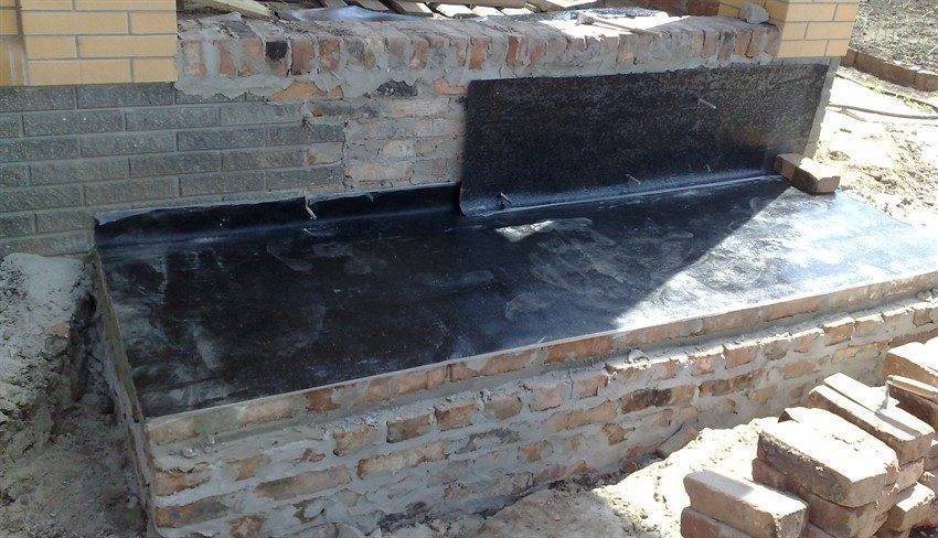 Самым важным и главным элементом при постройке фундамента крыльца своими руками является гидроизоляция. Для того чтобы ее обустроить нужно постелить рубероидом дно в котловане, а затем всю поверхность внутри опалубки. Армирование выполняется с помощью кирпичей высокого качества, на которые необходимо положить сетку и закрепить решетку заранее подготовленными кусками арматуры.