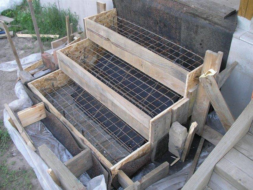 - Через неделю после заливки конструкции снимите отбортовку и опалубку со ступеней;