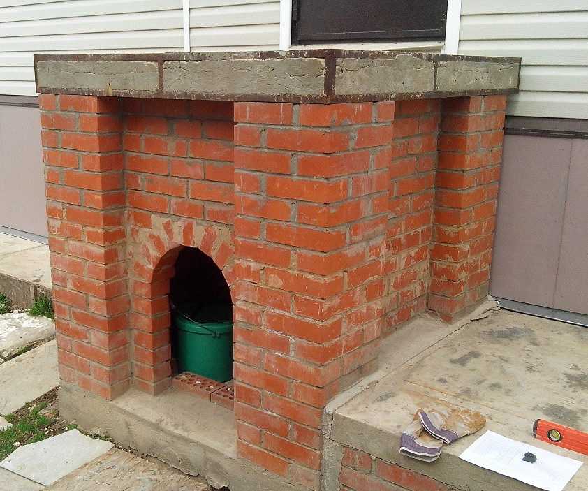 Предварительно из кирпича сложены стенки лестничной площадки, поверх которой залита монолитная бетонная плита. По краю в нее замоноличен каркас из уголков — чтобы можно было приварить лестницу и перила.