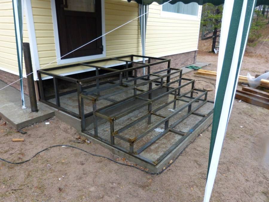 Изготовление металлического крыльца из профтрубы состоит из следующих этапов.