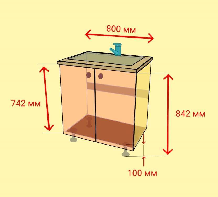 Это значит, что без учета толщины столешницы, высота короба будет 842 мм.