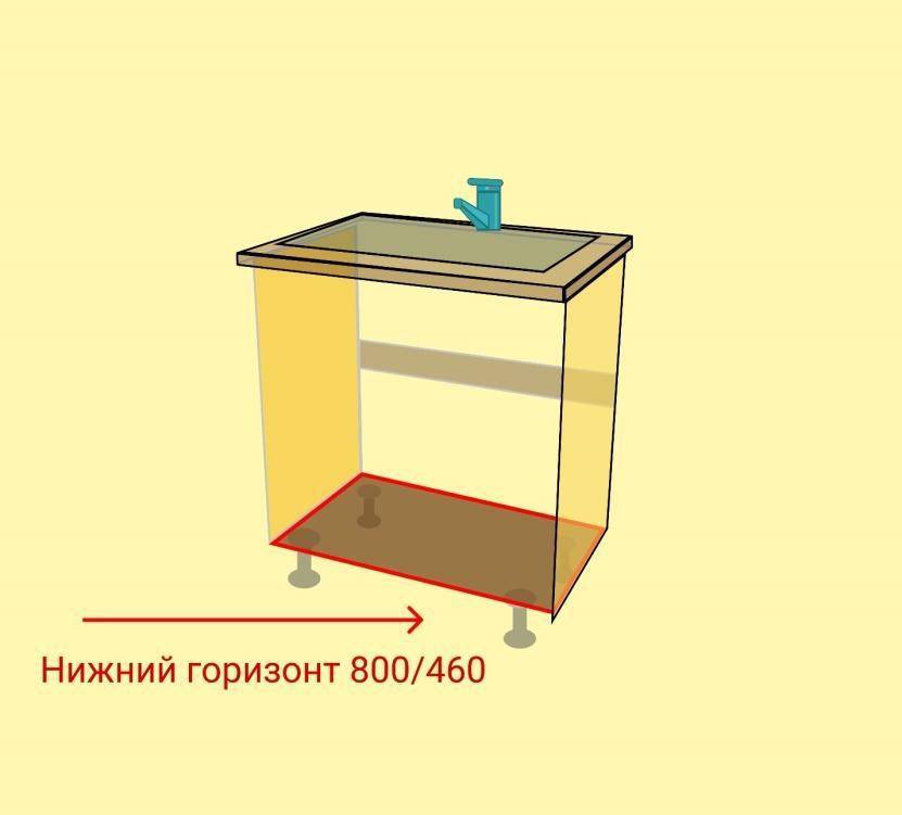 - Соответственно высота нижних ящиков будет зависеть от высоты столешницы минус 10 сантиметров.