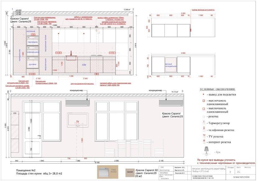 На первом этапе, выполняем замеры периметра кухни и ее составляющих. Точные замеры — гарант четкого размещения мебели. Производить замеры следует от угла. Чтобы избежать неточностей, выполнять их необходимо поэтапно: