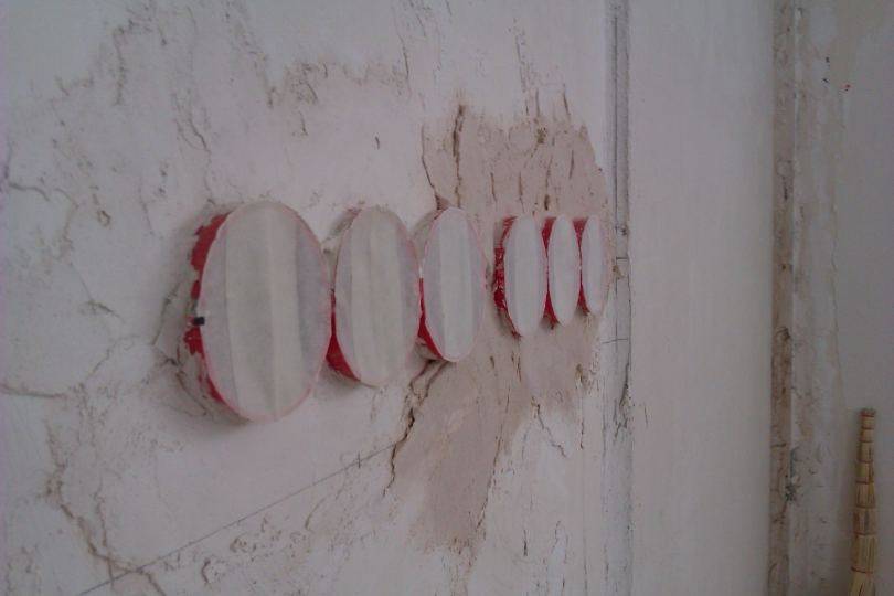 Отверстие в стене дополнительно смачивается водой, на впитывание дается около 2-3 минут, это избавит от необходимости нанесения слоя грунтовки. Далее, используя шпатель, можно начать закладывать гипсовый или алебастровый раствор внутрь