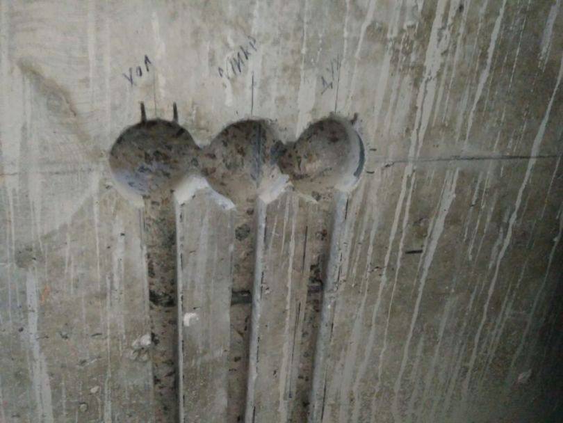 - Проламываются отверстия в подрозетнике для заводки кабелей питания.