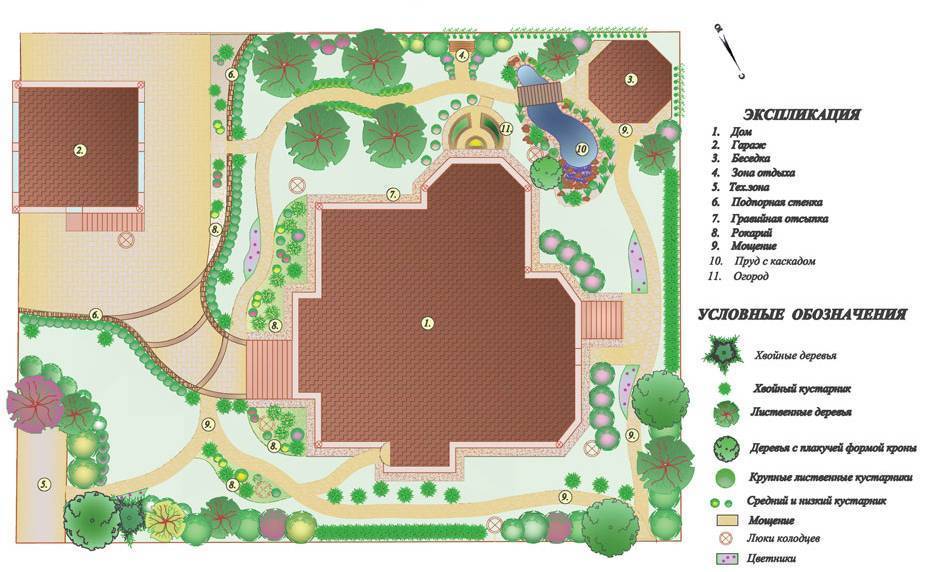 Именно с этих параметров начинается создание проектной документации, если, конечно, изначально не было желания использовать готовый проект ландшафтного дизайна, который в итоге все равно нужно дорабатывать, адаптируя его под реальные условия участка.