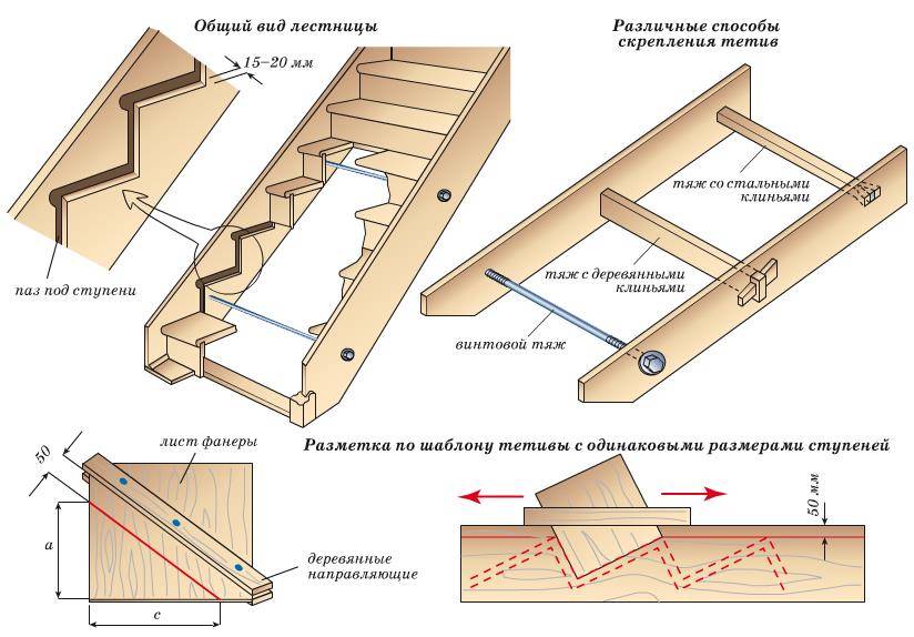 Данный вид лестницы – один из самых практичных. Ее конструкция позволяет собирать приспособление связи практически любой длины и легко выдерживает максимально допустимые нагрузки. Для изготовления могут применяться подручные строительные материалы, которые могут быть использованы для иных назначений после демонтажа. Нет необходимости делать какие-либо вырезы, упоры под планки ступенек и другие дополнительные манипуляции.