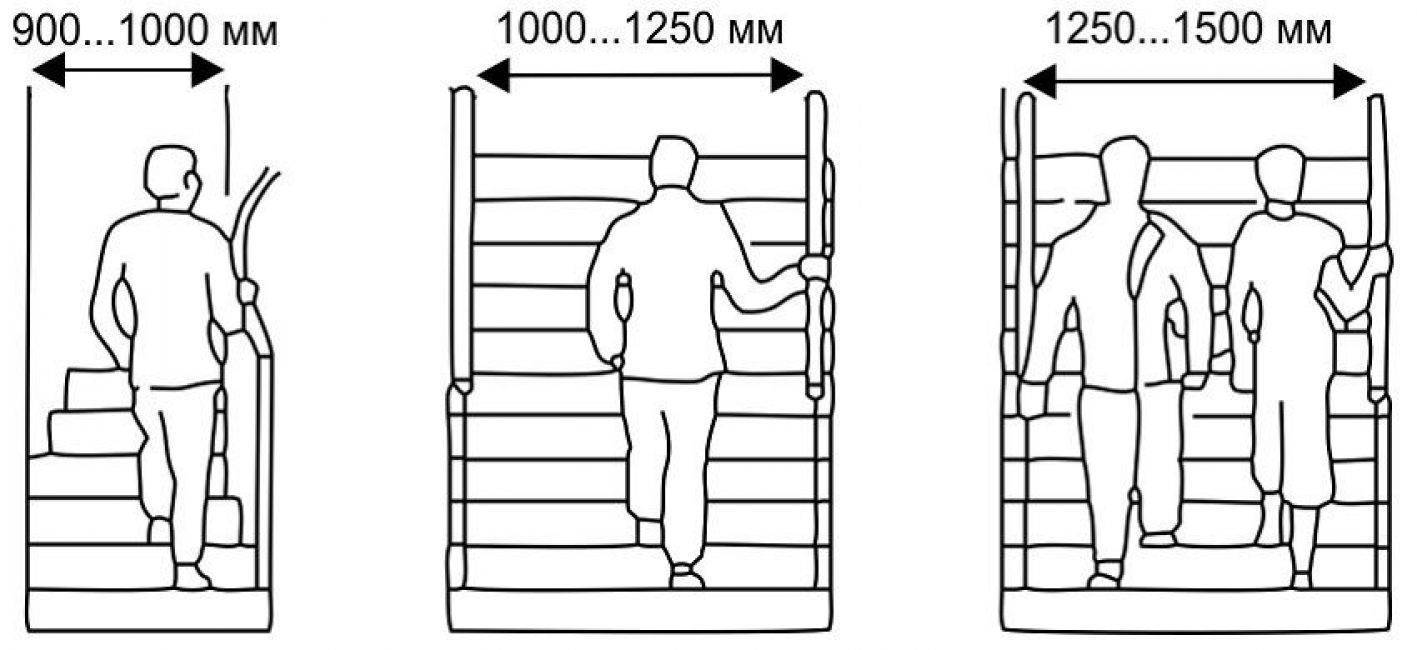 - ширина проступи – стандарт в 30 см основан на среднем размере ступни (26…32 см) и данных о том, что для комфортного опирания требуется размещение 90% площади ступни на проступи;
