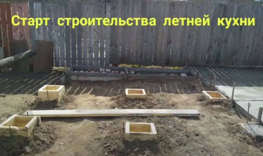 Каркасная летняя кухня имеет множество достоинств. Конструкцию можно возвести своими руками за довольно короткое время. При этом не нужны большие капиталовложения и специальная техника. Чтобы выполнить работы, необходимо просто следовать простому алгоритму. И начать стоит с возведения фундамента.