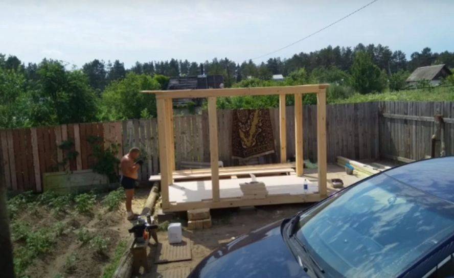 Для сооружения каркасной конструкции используют обработанный брус. Это позволяет защитить древесину от негативных факторов окружающей среды.