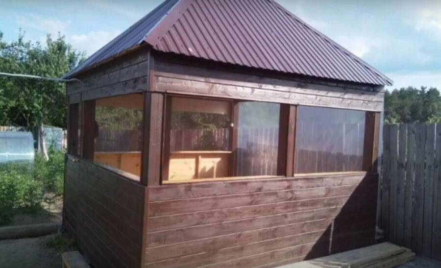Конструкция закрытого типа предусматривает сооружение полноценного домика. Он размещается отдельно или же примыкает к жилому строению. Такой вариант оптимально подходит для местности с суровыми климатическими условиями.