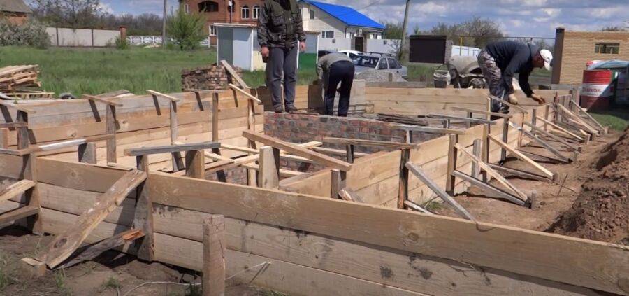 Сразу после оценки состояния почвы и подготовки чертежа можно приступать к заливке фундамента. Тип и глубина заливки зависят от размеров строения, предполагаемой осевой нагрузки.