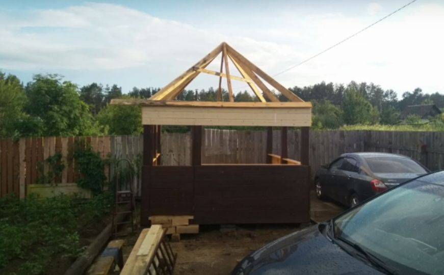 Закрытый тип больше всего подходит для непредсказуемого климата, а также для любителей пикника зимой. Ее можно поставить отдельно либо пристроить. Ее строят те, кто хочет получить по мере окончания работ максимально функциональное пространство:
