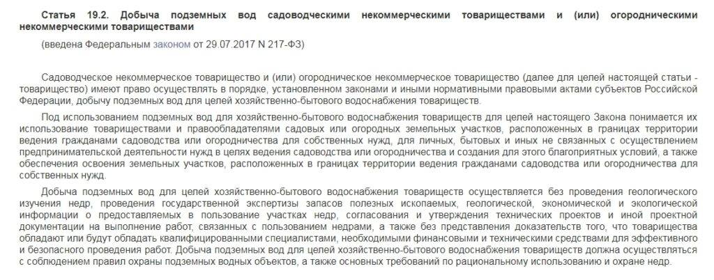 Использование воды из скважины садоводческими товариществами регулируется непосредственно ст. 19.2 закона №2395-1 от 21.02.1992.