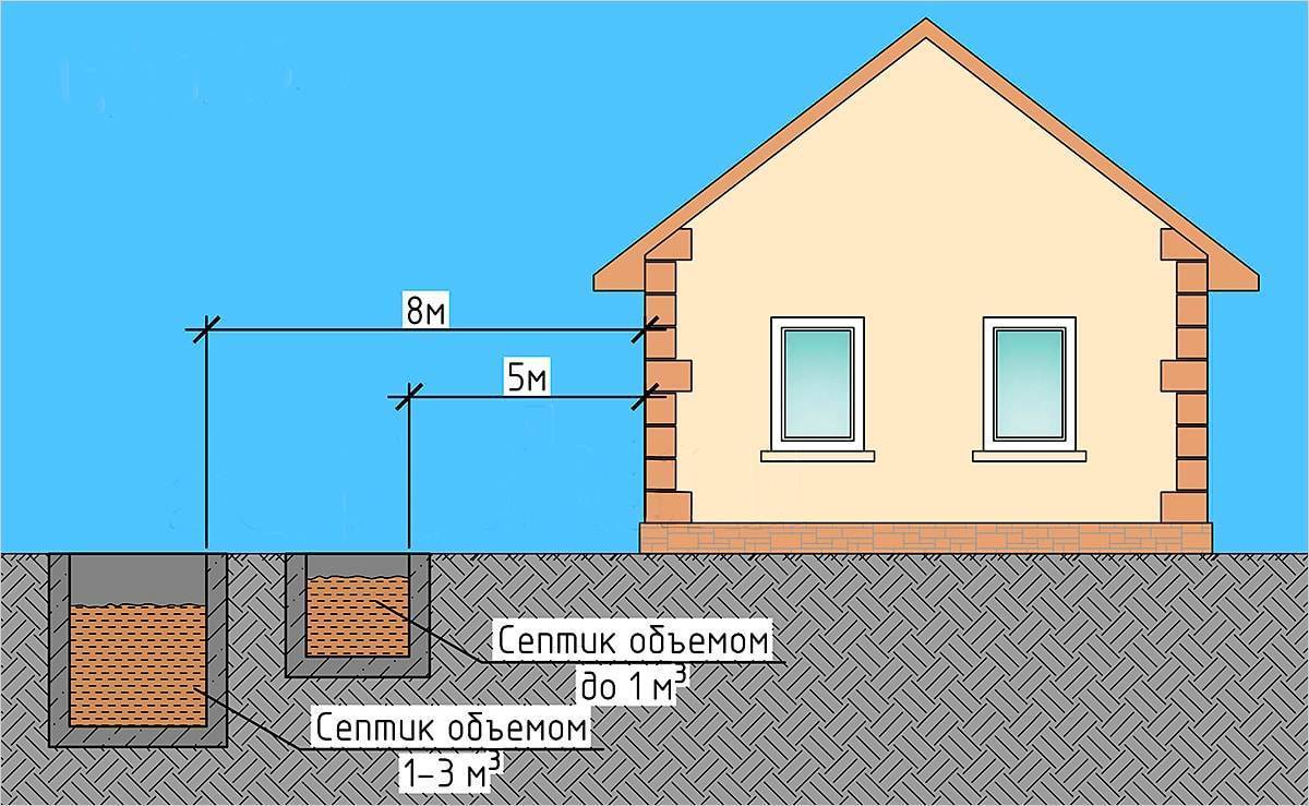 Расположение накопительных септиков относительно жилого дома