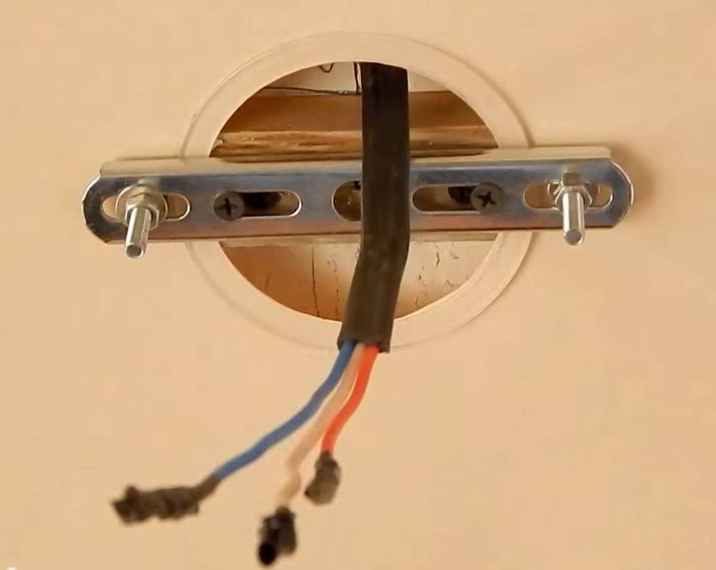 - При установке основания изучите, где проходит проводка на старом потолке, обязательно отключите питание перед началом работ.
