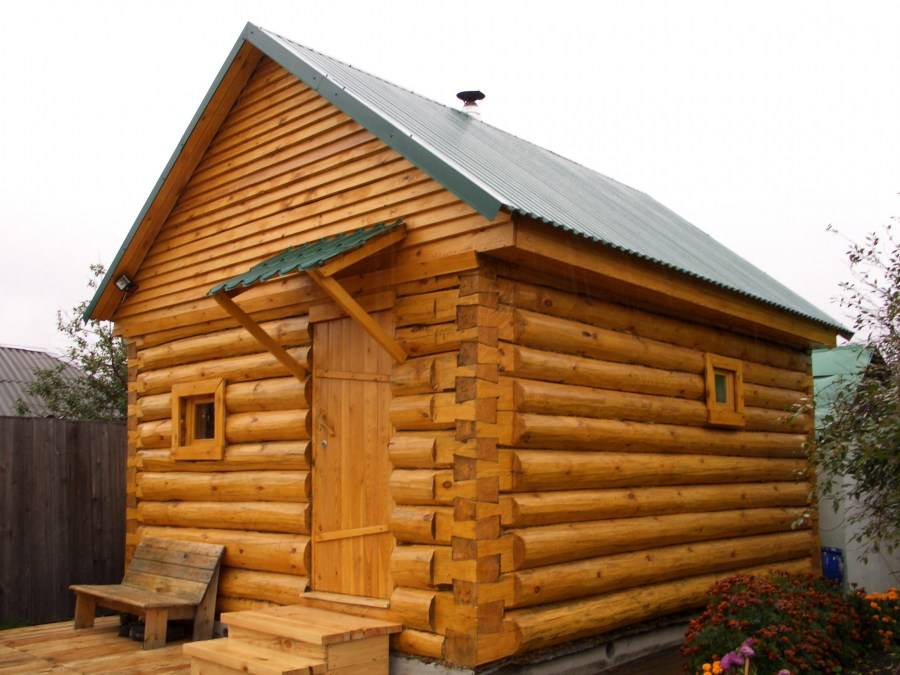Не беспокойтесь об эстетичности бани – достаточно отшлифовать, покрыть фасад специальной пропиткой и залакировать, после этого здание будет смотреться очень приятно и симпатично. Такие простые деревянные бани отлично вписываются в пейзаж и вид участка. Вы можете убедиться в этом, посмотрев фото бани своими руками.