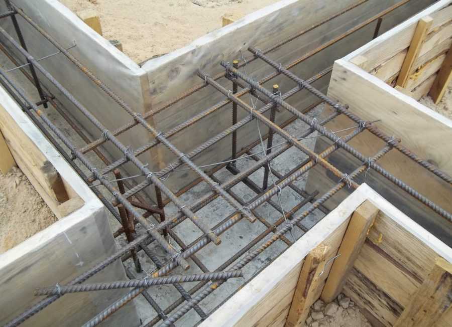 Особенно важно обвязать углы стыковки арматуры. Затем заливают фундамент, предварительно выполнив укладку канализационных труб и вентиляционных каналов