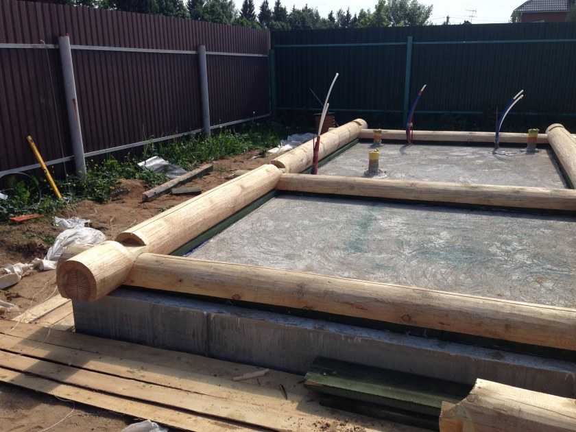 В центре схождения бревен находится ось строительства бани своими руками. Если диаметр бревна – около 20 см, то отступ от оси будет примерно 15-20 см. Так получаются полки закрепления отливов. Расчет позволит избежать ошибки и заваливания фундамента наружу.