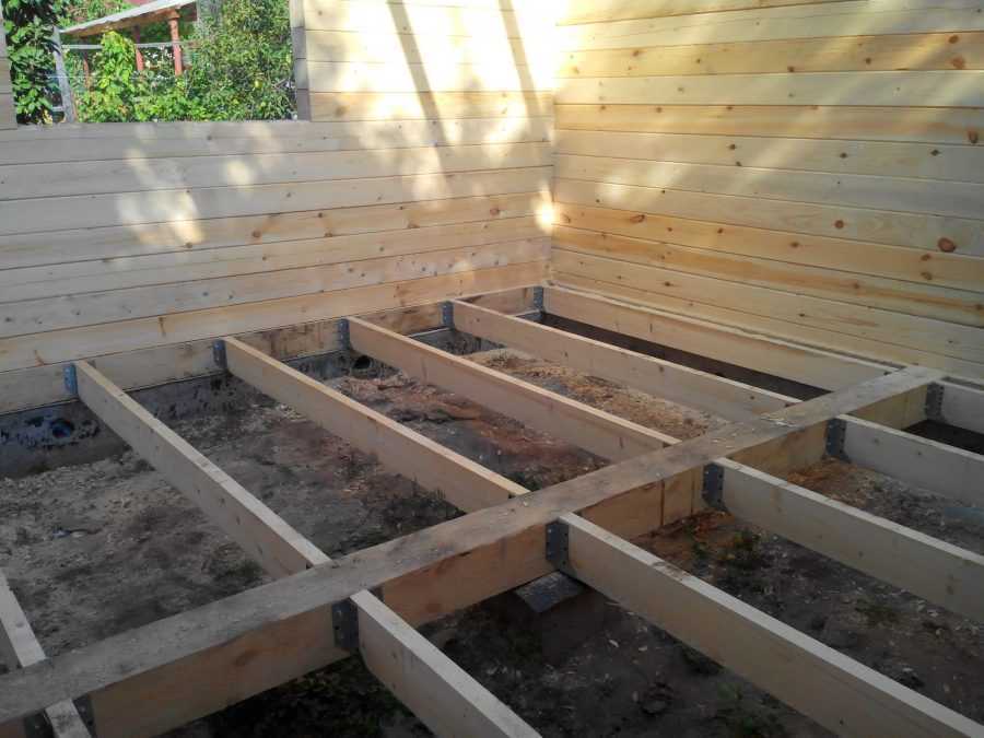 - Поверх потолочных балок набиваются одинаковые отрезки досок, которые будут черновым потолком.