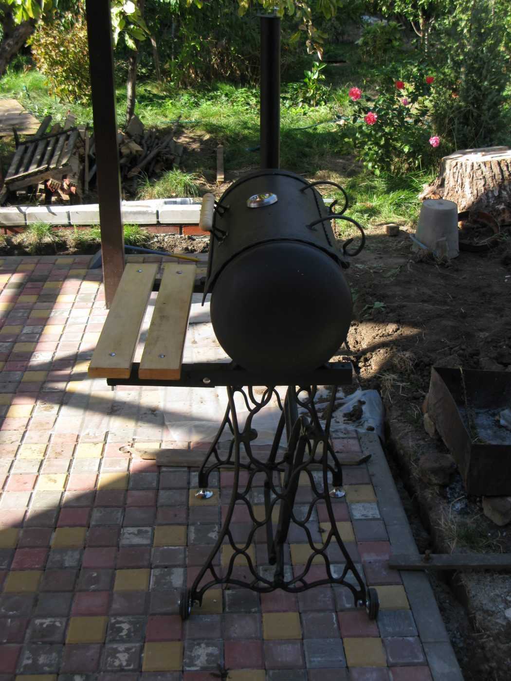 Встречаются и уникальные самодельные конструкции, установленные на нижнюю железную часть швейных машинок, непригодных к использованию столиков и прочее. В ход идет практически все, что устойчиво держится на любой поверхности и способно выдержать массу металлического короба и его содержимого в процессе приготовления пищи на огне.