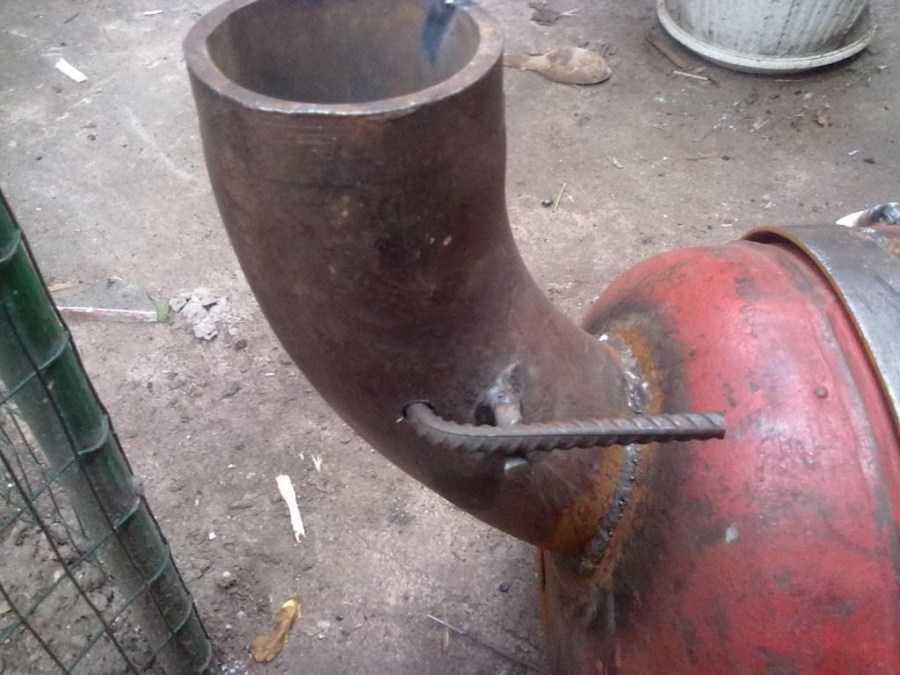 - Изготавливаем оси для поворотных частей:— отрезаем болгаркой куски трубы и прута;— вставляем заглушки в верхнюю часть трубы и через отверстия привариваем;— зачищаем места сварки болгаркой.