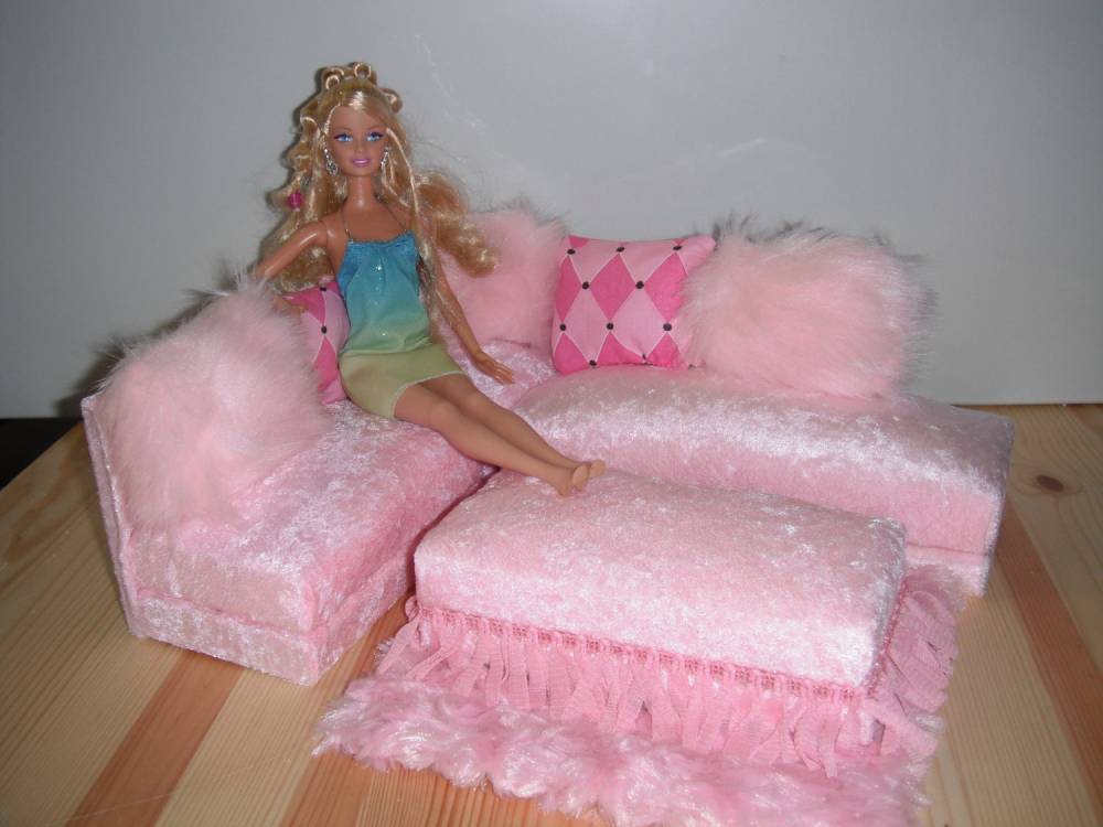 Кроме шкафов, столиков и тумбочек, для Барби делают и мягкую мебель. Например, раскладной диванчик. Такая мебель для современных кукол будет смотреться ярко и красиво. Да и материал для дизайна зависит от вашей фантазии. Вот как его можно сделать.