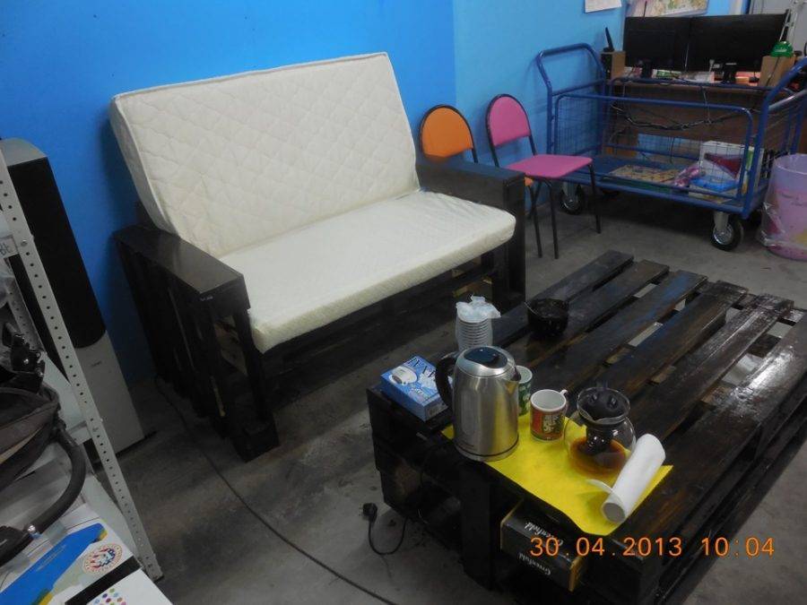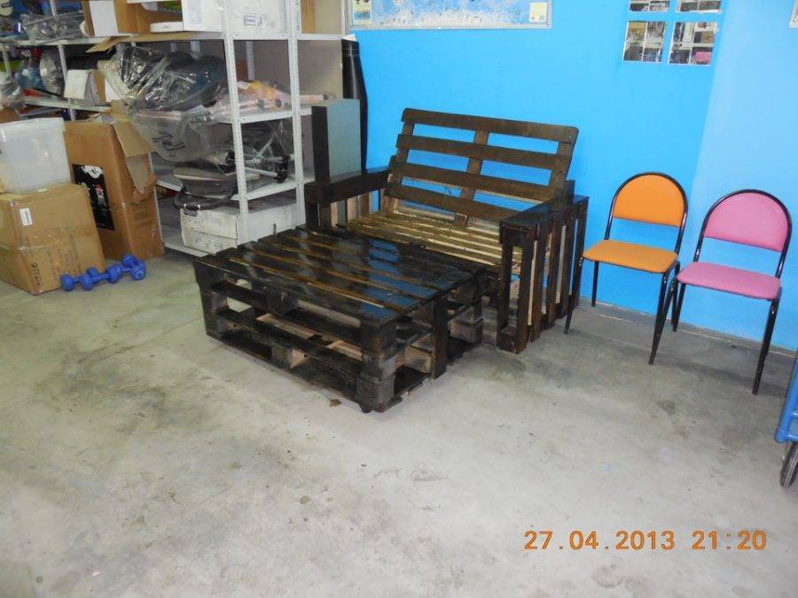 - установив друг на друга два или три поддона можно получить ровную площадку и использовать ее в качестве обеденного стола;