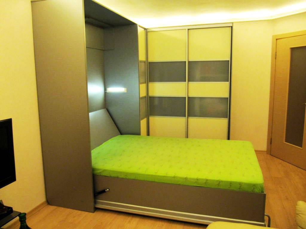 Встроенная кровать-шкаф в интерьере маленькой комнаты