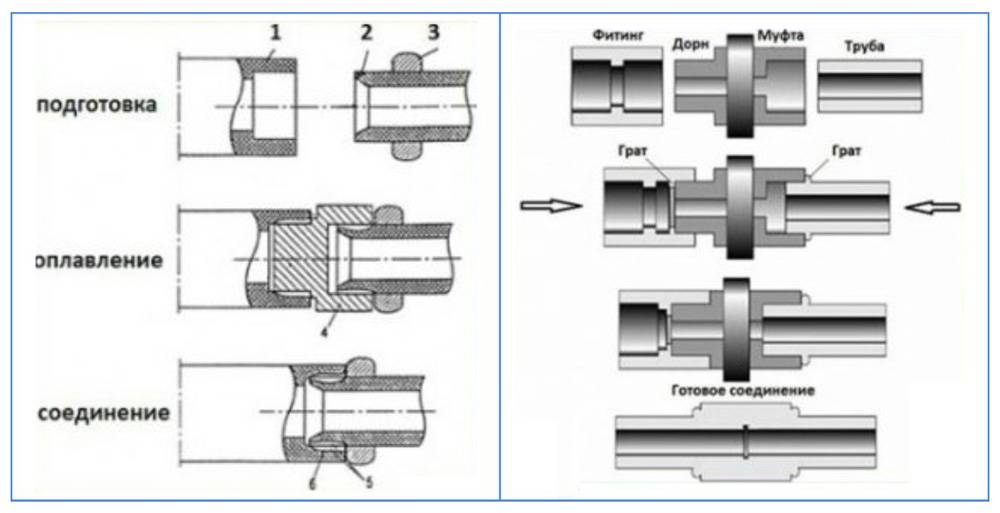 При монтаже трубопровода для холодной и горячей воды используются разные типы соединения.