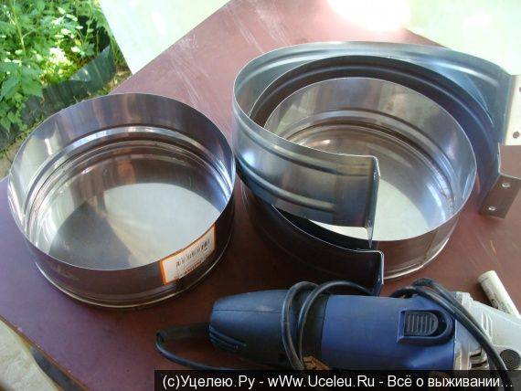 Понадобиться жестяная труба 200 мм, 2 заглушки и хомуты для надежной стяжки.